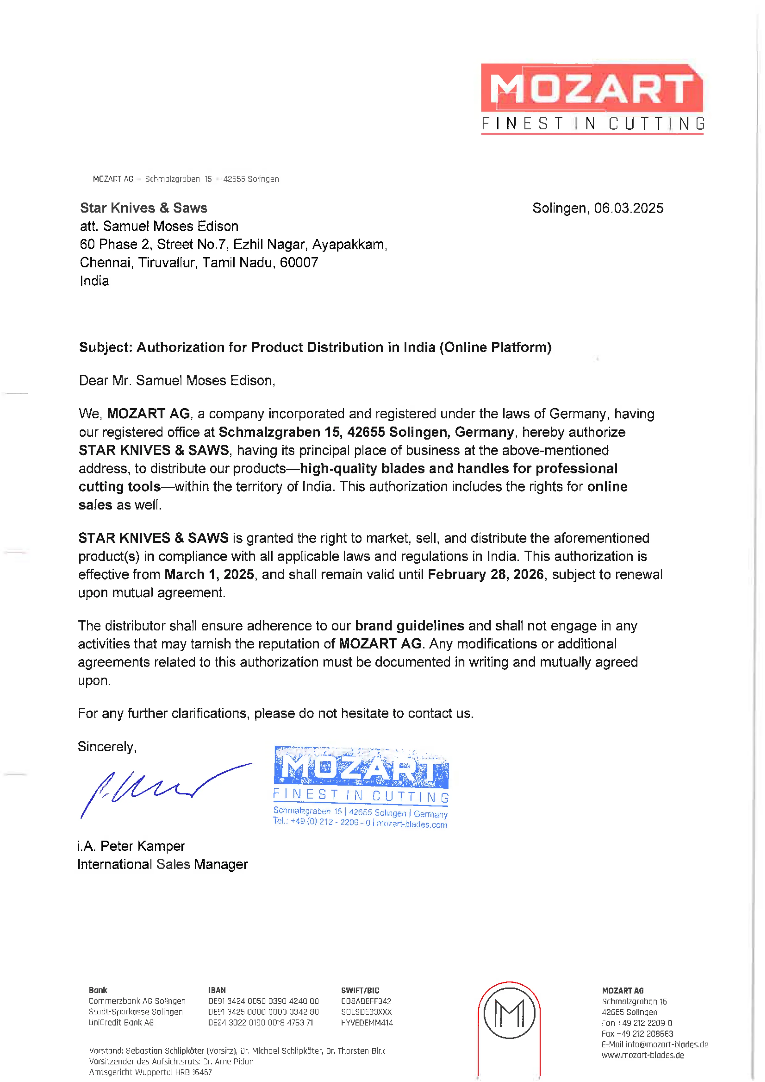 Mozart Dealer Certificate